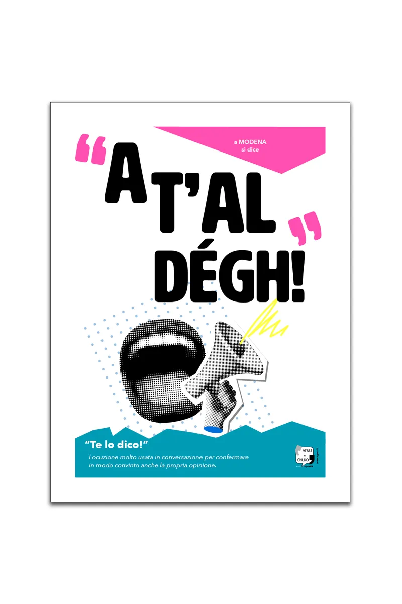 Diretto, deciso, 100% modenese. “A T’AL DÉGH!” è l’esclamazione perfetta per chi non le manda a dire. Ora puoi appenderla al muro con questo poster 30×40 dai colori pop e vibranti!
