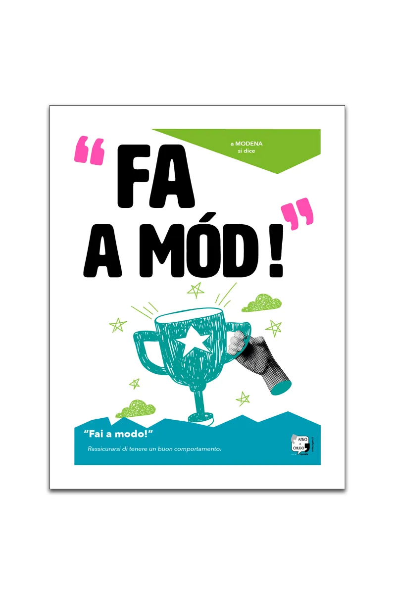 Un’espressione tipica e ironica del dialetto modenese, “Fa a mód!” invita a fare come si deve, con carattere e stile. Questo poster formato 30×40 cm unisce tradizione e design pop art in un mix di colori brillanti e grafica moderna.